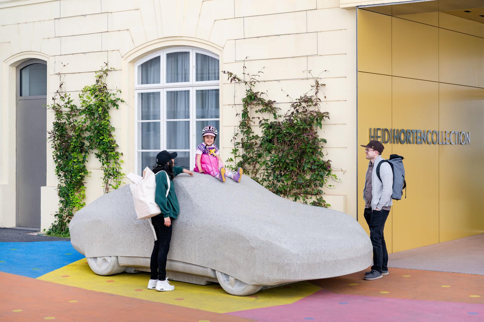 Dass ein „Betonporsche“, einer von 11 Abgüssen aus dem Jahr 2006, nun im Wiener Hanuschhof jenen Parkplatz okkupiert, der bislang der Direktorin der Horten Collection vorbehalten war, lässt sich auch als Geste eines neuen Repräsentationsdenkens deuten. Vor allem aber haben sich neue Fragen aufgetan: Ist die Mobilität, die im Kult um Sportwagen gipfelte, inzwischen museumsreif? Sind Kunstwerke als Statussymbol potenter als schnelle Autos? Und welche Monumente schaffen wir uns heute?