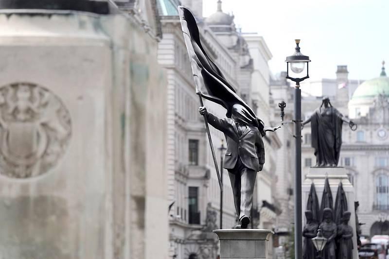 Viele Menschen bestaunten in der Früh das Kunstwerk in der Prachtstraße Waterloo Place im Zentrum Londons, einige machten Fotos. Der britische Künstler Banksy hatte in der Hauptstadt des Vereinigten Königreichs immer wieder mit Spontanaktionen überrascht, zuletzt mit Street-Art-Kunst an Wänden. Im Regelfall postet Banksy ein Foto seines Werkes auf der Plattform Instagram – in diesem Fall war das bis zum Vormittag nicht zu beobachten.