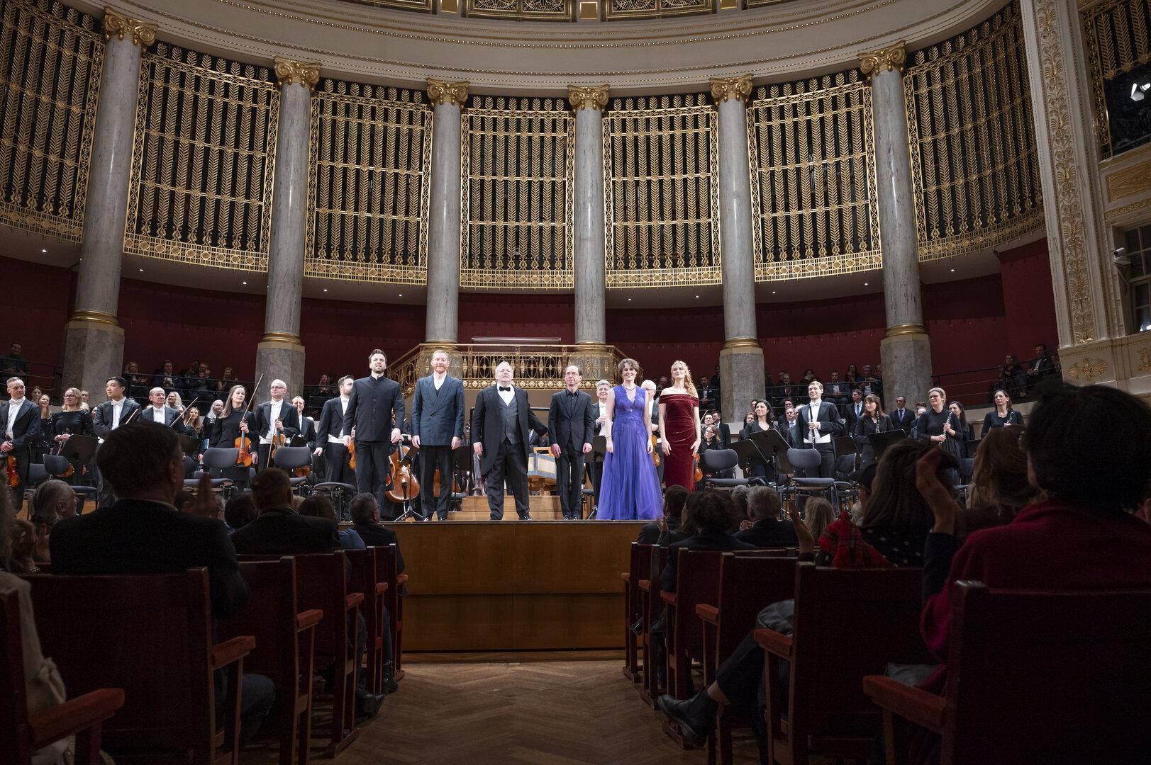Gesungen wurde ausgezeichnet. Die Wiener Singakademie (Einstudierung: Heinz Ferlesch) intonierte wortdeutlich und fein nuanciert. Ausgewogen, harmonisch demonstrierte dieser Chor in allen Stimmlagen, wie gut er auch im Piano klingen kann. Wie oft kann man bei einem Oratorium das Textbuch schließen und trotzdem jedes Wort verstehen? Diese Solisten machten es möglich. Allen voran Robin Tritschler als Evangelist, eine echte Luxusbesetzung. Mit seiner gestochen klaren Interpretation und seinem hellen Timbre zog der gebürtige Ire ganz in den Bann seines Vortrags. Betörend Sopranistin Miriam Kutrowatz, Marianne Beate Kielland bestach mit Innigkeit und den warmen Farben ihres Mezzosoprans. Bassbariton Matthias Winckhler ergänzte sehr gut. Ovationen für alle Beteiligten.