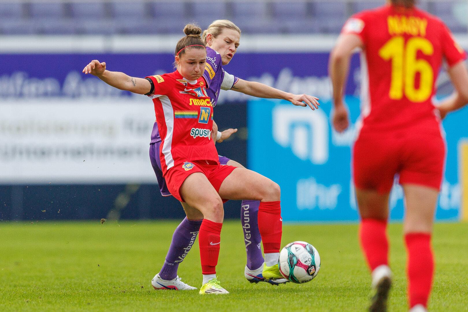 Ich bin viel in der Generali Arena. In erster Linie bin ich Spielerin und habe fixe Trainingszeiten. Und rundherum bastle ich meinen Alltag, also meine Rolle im Büro im ersten Stock. Dort verbringe ich meistens Montag und Dienstag mehr Zeit als gegen Ende der Woche. Wenn ich auf dem Platz stehe, bin ich rein Spielerin. Ich lasse die Themen, die mich beschäftigen, im Büro. Dann bin ich Kapitänin und habe den Kopf frei für das, was er auf dem Spielfeld passiert.