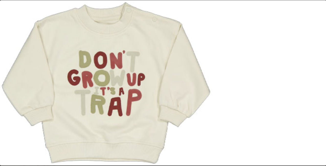 Die Textilhandelskette Zeeman ruft einen Baby-Sweater zurück – und zwar jenen mit dem Aufdruck “ Don’t grow up, it’s a trap“.