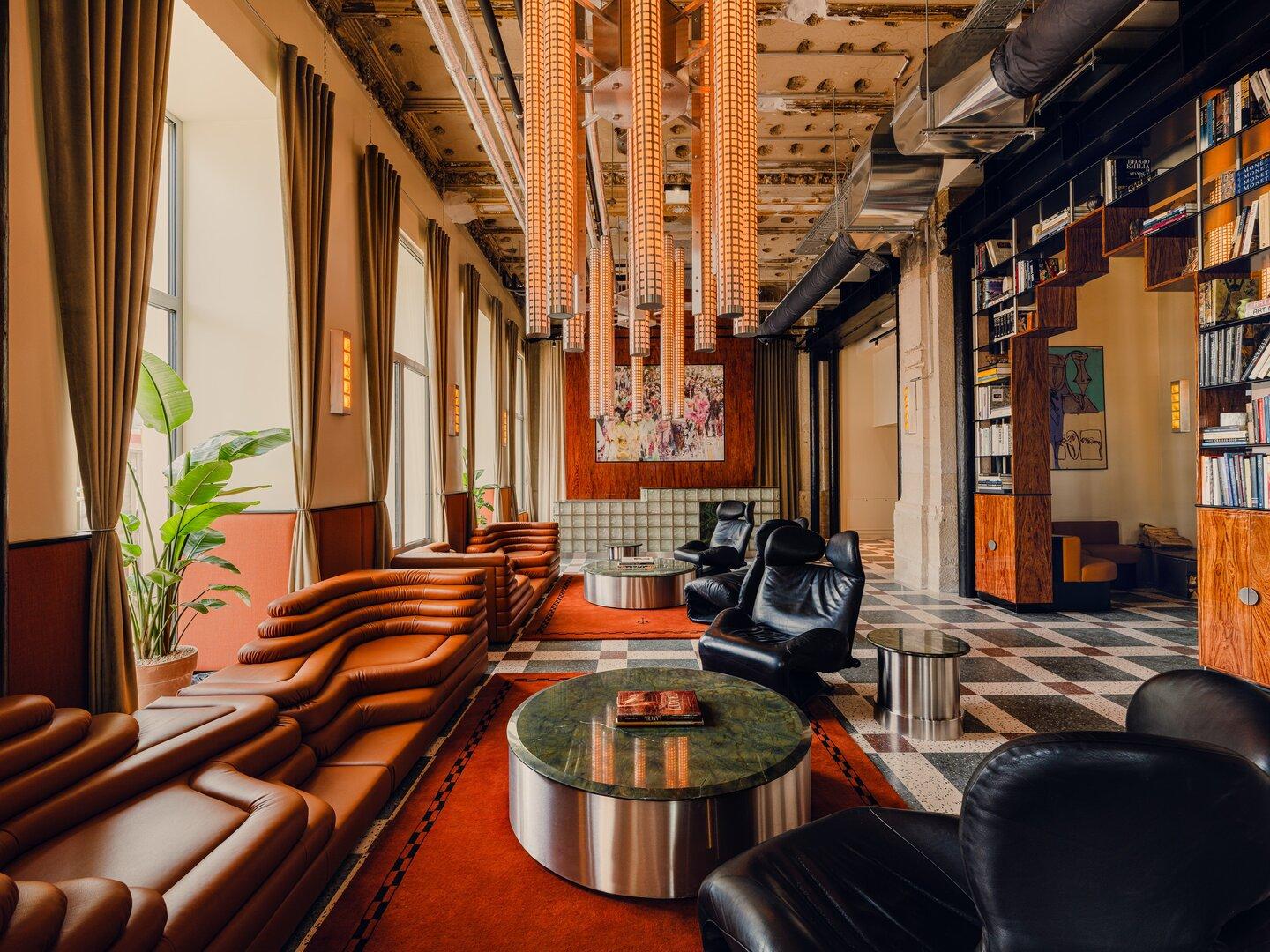 Für das Interior-Design zeichnet das Berliner Innenarchitekturbüro weStudio unter der Leitung von Piotr Wiśniewski verantwortlich. Lobby und Bar wurden als Nachbarschaftssalons gedacht. Neben Terrazzo-Böden, maßgefertigten Leuchten und zeitgenössischer Kunst verbindet ein prägendes Element das gesamte Haus: Eine horizontale schwarze Wandleiste, inspiriert von traditionellem Wiener Design, zieht sich durch alle Räume.
